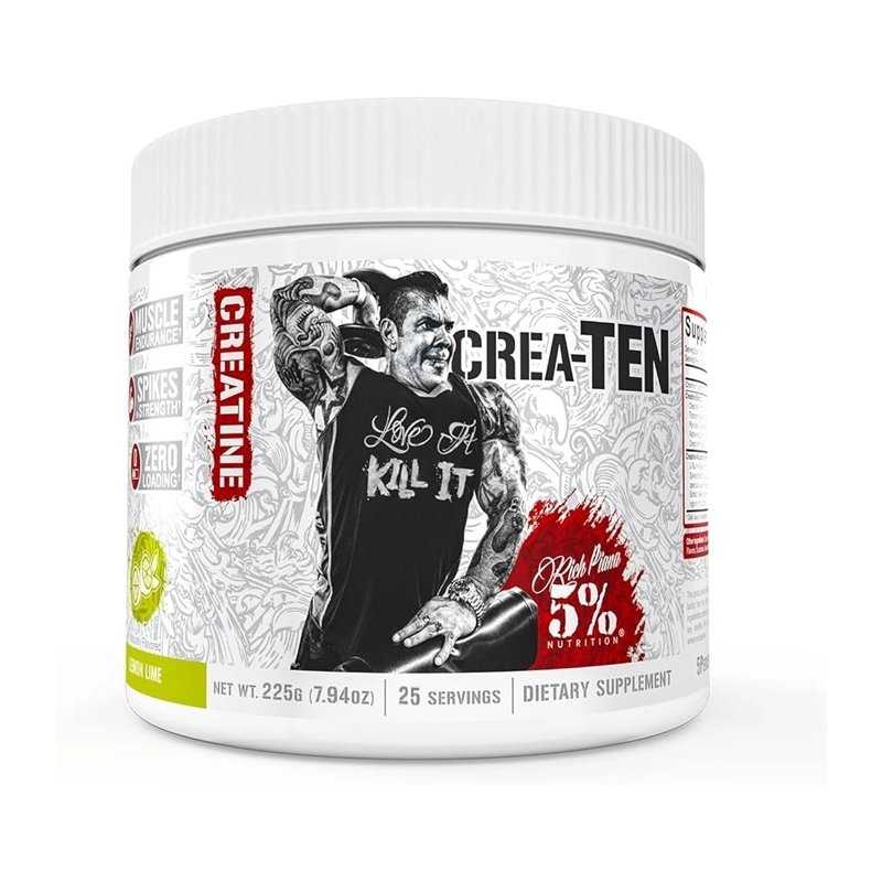 Crea-TEN sudėtyje yra efektyviausios kreatino formos, šiuo metu prieinamos rinkoje. Dėl pasaulinio trūkumo ir fakto, kad 5 % vartotojų nenaudos žemesnės kokybės kreatino formų, mes pasirinkome naudoti 9 geriausias šiuo metu rinkoje esančias kreatino formas. Crea-TEN taip pat turi mūsų išskirtinį Creatine Accelerate mišinius. Ši novatoriška formulė optimizuoja įsisavinimą ir žymiai pagerina ištvermę. Ir tai dar ne viskas! Ji taip pat didina hidrataciją ir ląstelių tūrį. Tai reiškia stulbinamą raumenų pumpo efektą!