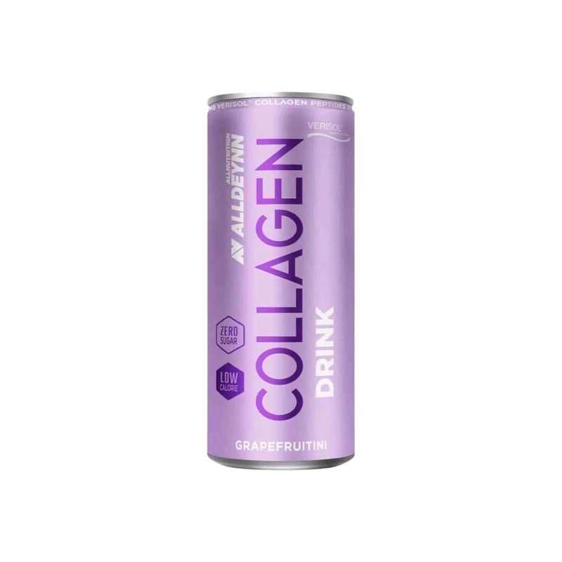 ALLNUTRITION AllDeynn Collagen Drink Grapefruitini 330 ml – gaivus kolageno gėrimas su 3300 mg VERISOL® ir B grupės vitaminais (B3, B5, B6, B12). Be pridėtinio cukraus, tik 16 kcal – odai, plaukams ir nagams kasdien.