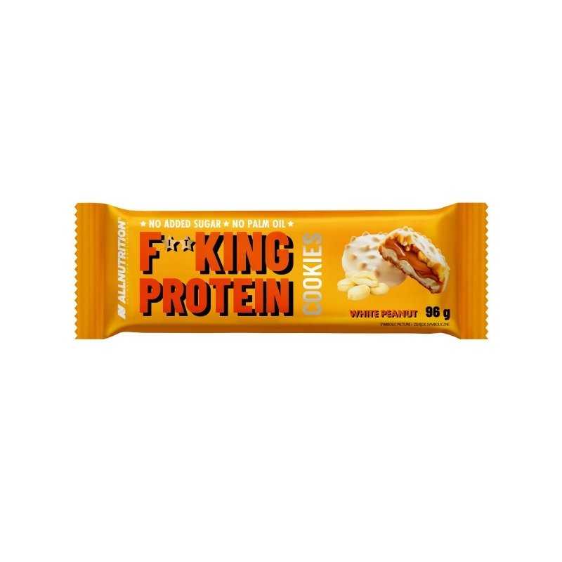 ALLNUTRITION FITKING PROTEIN COOKIES – tai skanūs, sotūs baltyminiai sausainiai su kremu ir traškiais riešutų gabaliukais, padengti minkšta glazūra. Sukurti tiems, kurie mėgsta saldumynus, bet nori rinktis protingiau: be pridėtinio cukraus, su baltymais ir skaidulomis.