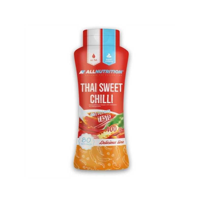 ALLNUTRITION Thai Sweet Chilli Sauce – 400 g (400 ml) – super tirštas, aromatingas tailandietiško saldžiai aštraus skonio padažas, sukurtas dietai ir „fit“ mitybai. 1 porcija (5 g) turi tik 1 kcal, 0 g cukraus ir 0 g riebalų(angliavandenių ~0,3 g). Puikiai tinka vištienai, ryžiams, daržovėms, wok patiekalams, BBQ ar kaip „dip“ – suteikia ryškų skonį be papildomų kalorijų. Prieš naudojimą suplakti.