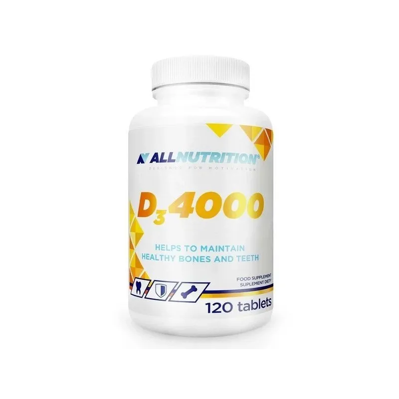 ALLNUTRITION D3 4000 papildo kasdienę mitybą vitaminu D, kuris yra būtinas tinkamam organizmo veikimui. Patogios ir mažos tabletės leidžia lengvai vartoti šį sensacingą maisto papildą. Šis produktas suteikia net 1000 % rekomenduojamos vitamino D paros normos! (1/2 tabletės).
