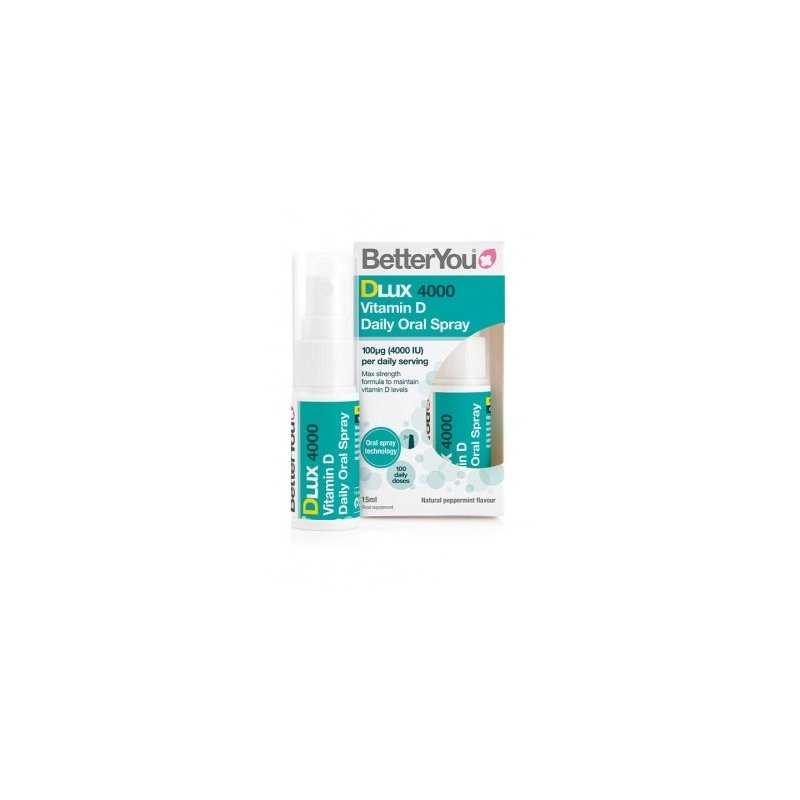 BetterYou DLux 4000 yra maksimalios stiprumo vitamino D burnos purškalas, specialiai sukurtas vitaminui D tiekti per burnos minkštuosius audinius optimaliam įsisavinimui.
