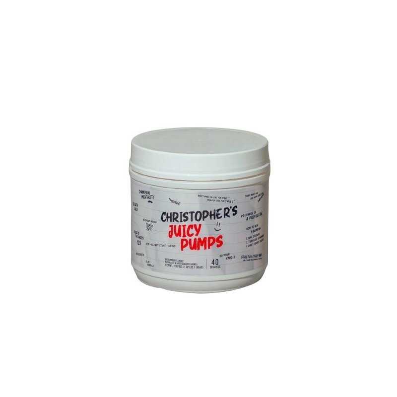 Christopher's Juicy Pumps – tai 0 stimuliantų (be kofeino) „pump“ formulė, skirta sportuojantiems, kurie nori geresnės kraujotakos treniruotėje, raumenų „pilnumo“ ir maksimalios „pump“ savijautos. Skonis – misterija (netikėtas, bet nauda aiški). Puikus pasirinkimas vakariniams sportininkams, kurie vengia kofeino, arba tiems, kas nori šį produktą stack’inti kartu su savo pre-workout (stipresniam kraujo pritekėjimui į dirbančius raumenis).