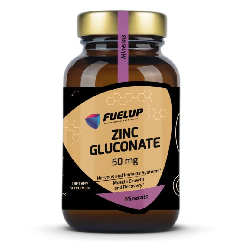 FUELUP Cinko gliukonatas 50 mg – aukštos kokybės JAV gamybos (pagal gamintojo informaciją) cinko papildas tabletėmis, skirtas kasdieniam organizmo palaikymui. Cinkas yra vienas svarbiausių mikroelementų, prisidedantis prie imuninės sistemos, medžiagų apykaitos, baltymų sintezės ir raumenų atsistatymo procesų.*