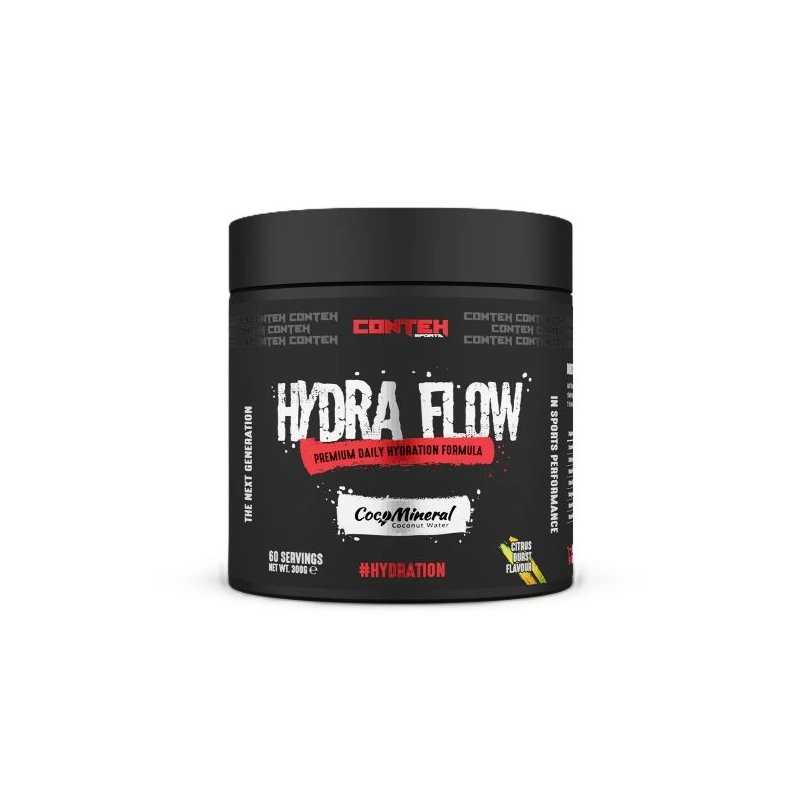 CONTEH SPORTS HYDRA FLOW – tai premium klasės kasdienės hidratacijos formulė, sukurta tam, kad padėtų hidratuoti organizmą, papildyti elektrolitus, prarastus su prakaitu, ir suteiktų papildomą „revitalizacijos“ efektą dėl pridėtų vitaminų. Tinkama vartoti bet kuriuo paros metu – ryte, kad greičiau atstatytumėte skysčių balansą po miego, dienos eigoje, arba po treniruotės, kai prakaituojant netenkama mineralų.
