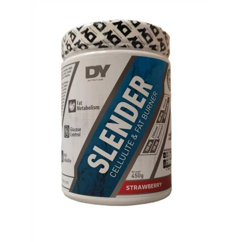 Dorian Yates Slender Cellulite & Fat Burner (Raspberry) – 450 g – termogeninis riebalų deginimo ir svorio kontrolės papildas milteliais su kompleksine formule: Thermo Fat Burning Matrix, Cellulite Stop Blend ir Appetite Control. Vienoje porcijoje (15 g / 2 kaupinai šaukšteliai) yra vitamino C 750 mg, biotino 15 µg, cinko 24 mg, L-karnitino 510 mg, kolageno 480 mg, hialurono rūgšties 60 mg, bromelaino 150 mg, MSM 281 mg ir augalinių ekstraktų (žalioji arbata, žalioji kava, guarana, kola riešutas, sibirinis ženšenis, juodieji pipirai ir kt.). Didelis kofeino kiekis – ~152,1 mg porcijoje.