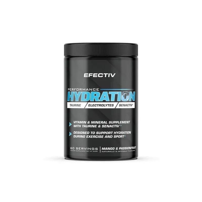 EFECTIV Performance Hydration yra maisto papildas su vitaminais ir mineralais, skirtas palaikyti hidrataciją intensyvaus fizinio krūvio arba sporto metu. Performance Hydration taip pat turi aukštos kokybės, patentuotą ingredientą Senactiv.