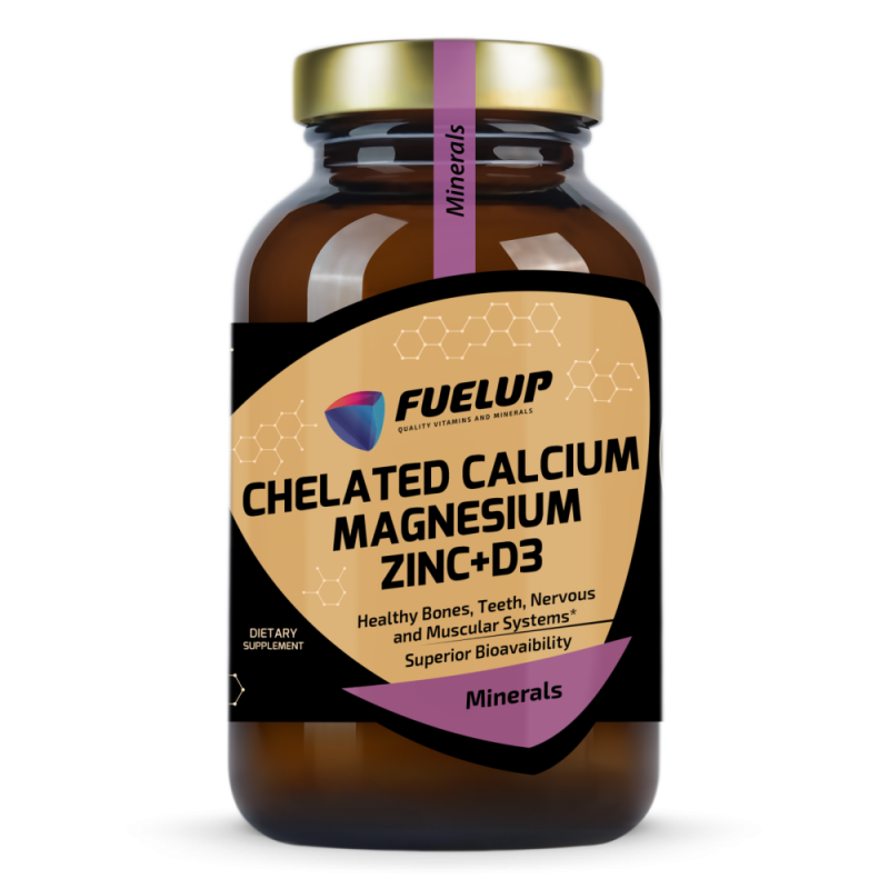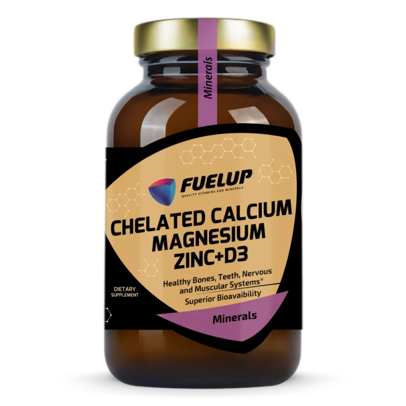 FUELUP Kalcis Magnis Cinkas + Vitaminas D3 – aukštos kokybės JAV gamybos chelatinių mineralų kompleksas, skirtas kasdieniam kaulų, dantų, nervų sistemos ir raumenų funkcijos palaikymui.*