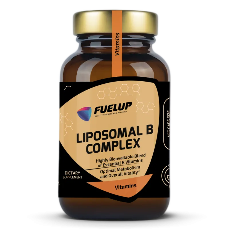 FUELUP Liposomal B Complex – tai pažangus, itin gerai pasisavinamas B grupės vitaminų kompleksas, sukurtas kasdieniam energijos apykaitos, nervų sistemos, smegenų veiklos ir bendro gyvybingumo palaikymui.* Formulė praturtinta aktyviomis vitaminų formomis ir sudaryta taip, kad padėtų palaikyti energijos lygį, protą aiškumą bei metabolizmą.*