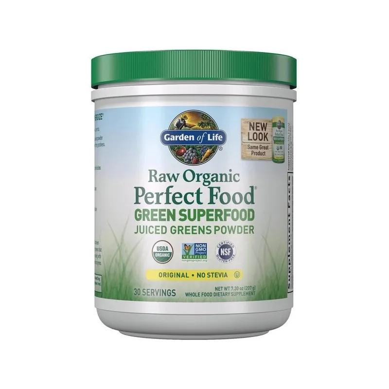 Pagalėtas iš 34 maistingųjų medžiagų prisotintų neapdorotų ir auginamų žolių, Raw Perfect Food Green Powder yra sertifikuotas pagal USDA ir patikrintas kaip ne genetiškai modifikuotas produktas (non-GMO Project). Mūsų Raw Perfect Food žolės spaudžiamos ūkyje tiesiai po nuskynimo, naudojant sausą šaldymo temperatūrą. Visa tai vyksta per valandą nuo derliaus nuėmimo.