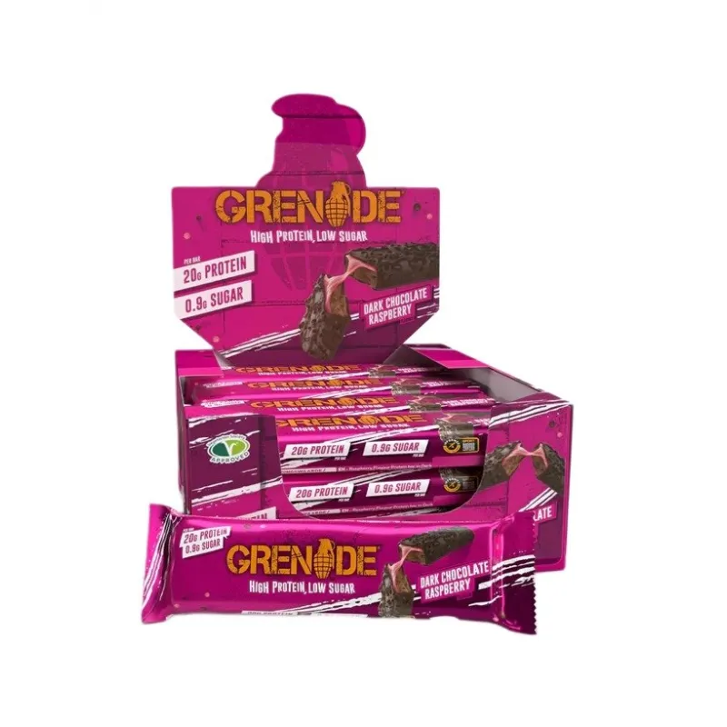 Pasiilginkite be kaltės su mūsų aviečių juodojo šokolado baltymų batonėliu. Šis trigubo sluoksnio gardėsis turi saldų aviečių karamelės įdarą, turtingą nugatą ir prabangų juodojo šokolado glajų. Su 20 g baltymų ir minimaliu cukraus kiekiu, šis batonėlis yra puikus baltymų užkandis tiems, kurie nori palaikyti sveiką gyvenimo būdą.