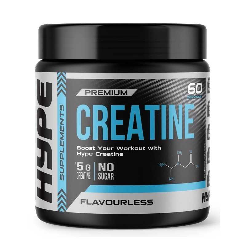 HYPE Creatine (300 g) – beskonis, be cukraus kreatino monohidratas su 5 g porcija (iš jų 4,40 g kreatino), skirtas jėgai, sprogstamai galiai ir intensyvesnėms treniruotėms. Pakuotėje – 60 porcijų.