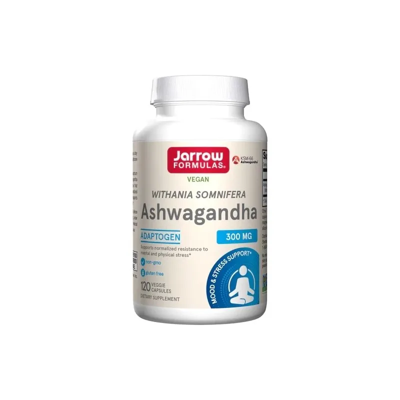 Jarrow Formulas Ashwagandha yra pilno spektro ekstraktas, gautas iš ašvagandos (Withania somnifera) šaknies. Tyrimai rodo, kad ašvaganda yra adaptogenas, kuris palaiko normalizuotą atsparumą fiziniam ir psichiniam stresui bei remia ištvermę, raumenų atkūrimą ir pažintinę sveikatą.