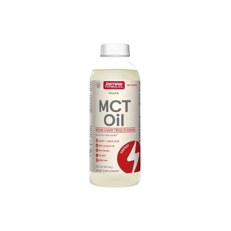 Jarrow Formulas MCT aliejus yra natūralus kaprilinių (C8) ir kaprinių (C10) riebalų rūgščių šaltinis, gaunamas iš 100% kokoso aliejaus. Vidutinės grandinės trigliceridai (MCT) yra maistingos riebalų rūgštys, kurias organizmas greitai degina energijai gauti. Skirtingai nei kitos ilgosios ar trumposios grandinės riebalų rūgštys, kurios organizme kaupiamos kaip riebalai, MCT yra lengviau apdorojamos ir metabolizuojamos kepenyse, suteikiant greitą energiją. Žr. maistines medžiagas dėl bendro riebalų ir sočiųjų riebalų kiekio. MCT aliejus greitai įsisavinamas ir greitai suteikia energijos organizmui.