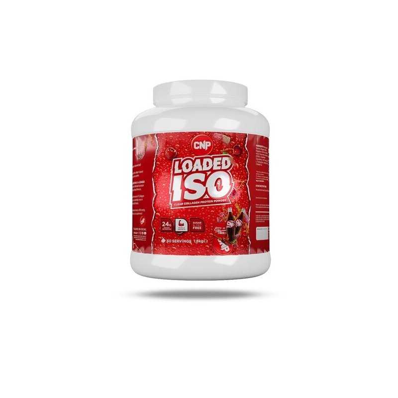 CNP LOADED ISO, Cherry Cola Bottles (1800 g) – tai gaivus, „crystal clear“ tipo kolageno baltymų gėrimas (ne pieno kokteilis), sukurtas tiems, kas nori lengvai išgeriamo baltyminio gėrimo. 1 porcija (30 g) suteikia 24 g baltymų ir tik 104 kcal, o riebalų – <0,5 g, cukrų – 0,10 g. Puikus pasirinkimas po treniruotės ar bet kada dienos eigoje, kai norisi skaidraus proteino su saldainių įkvėptu vyšnių kolos skoniu. 60 porcijų pakuotėje.