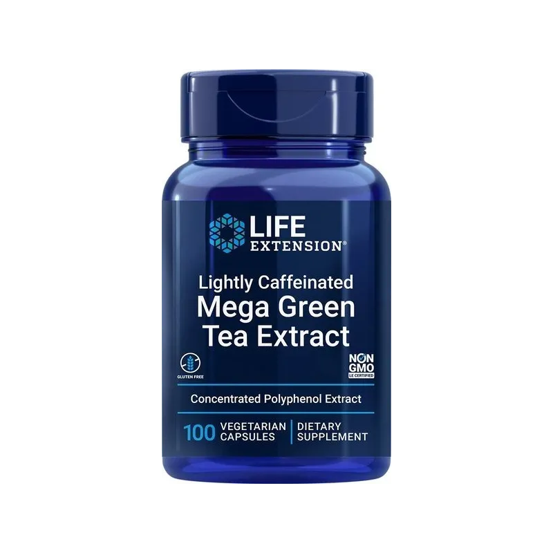 Kas yra Lengvai Kofeinuotas Žaliosios Arbatos Ekstraktas? Žalioji arbata (Camellia sinensis) turi sveikatą gerinančių polifenolio junginių, tokių kaip epigalokatechino-3-galatas (EGCG), galingas anti-senėjimo fitonutrientas, kurio veikla buvo plačiai tiriama moksliniuose darbuose. Mūsų Mega Žaliosios Arbatos Ekstraktas suteikia daugiau šių galingų junginių nei kelių puodelių žaliosios arbatos ekvivalentas lengvai kofeinuotame maisto papilde. Kapsulėje Mega Žaliosios Arbatos Ekstrakto yra 725 mg žaliosios arbatos ekstrakto, standartizuoto 98 procentais polifenolių.