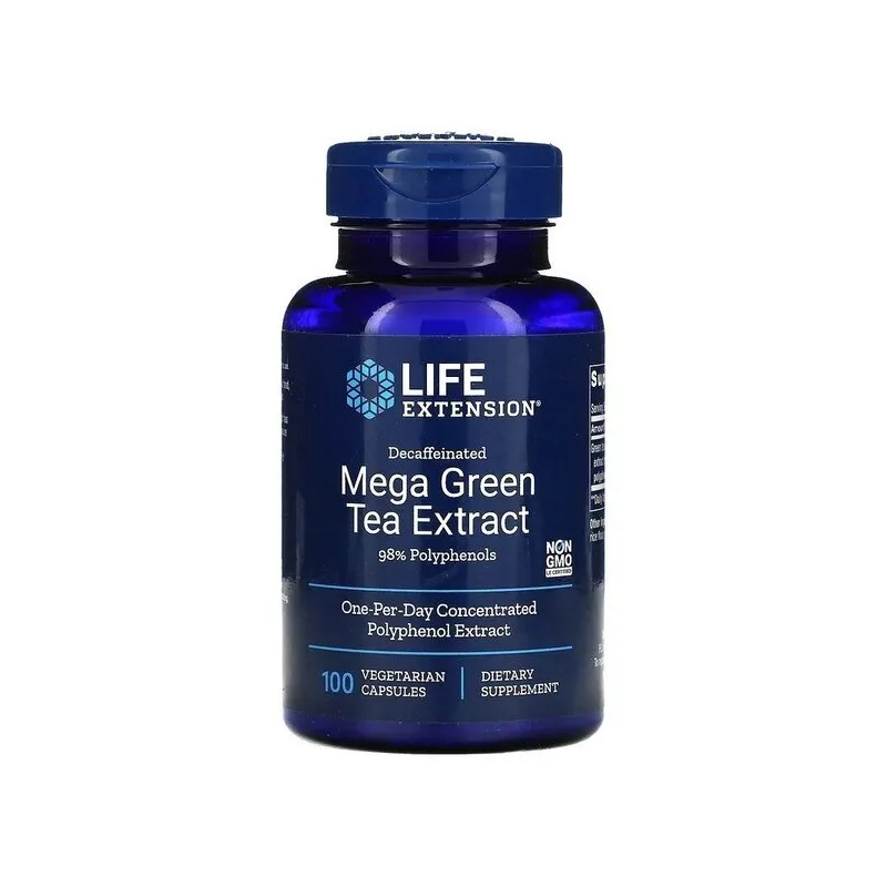 Mega žaliosios arbatos ekstrakte esantis augalinis ekstraktas buvo sukauptas ir dvigubai standartizuotas siekiant užtikrinti aukščiausią kokybę, pastovumą ir biologinį aktyvumą. Kiekvienoje porcijoje yra nedidelis kiekis kofeino (max. 3,6 mg). Kadangi vienoje decafinuotos arbatos puodelyje yra mažiausiai 9 mg kofeino, šio papildo kofeino kiekis greičiausiai nesukels stimuliuojančio poveikio.