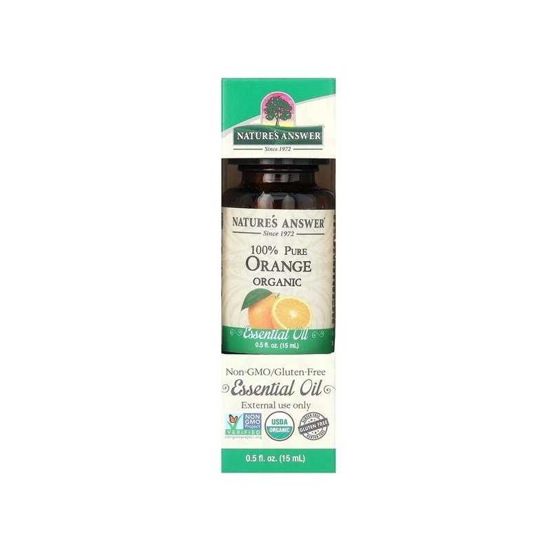 NATURE'S ANSWER 100% Pure Orange Essential Oil – tai 100% grynas saldžiojo apelsino eterinis aliejus, išgaunamas iš Citrus aurantium dulcis (apelsino) žievelių. Apelsino aromatas – šiltas, saldžiai citrusinis, „saulėtas“ ir labai mėgstamas namuose, kai norisi jaukumo bei gaivos vienu metu. Puikiai tinka difuzoriui, aromaterapijai ir inhaliacijoms (pagal instrukciją), o naudojimui ant odos – tik praskiedus su baziniu aliejumi.