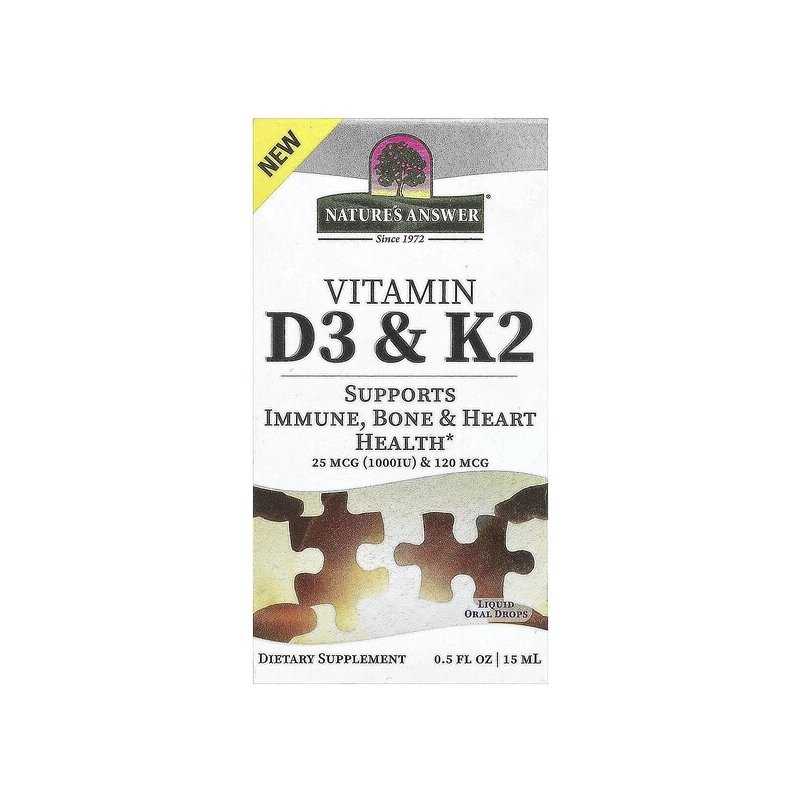 Nature's Answer vitaminas D3 ir K2 sujungia dvi svarbias maistines medžiagas, padedančias palaikyti sveiką kaulų, širdies ir kraujagyslių bei imuninės sistemos funkciją.