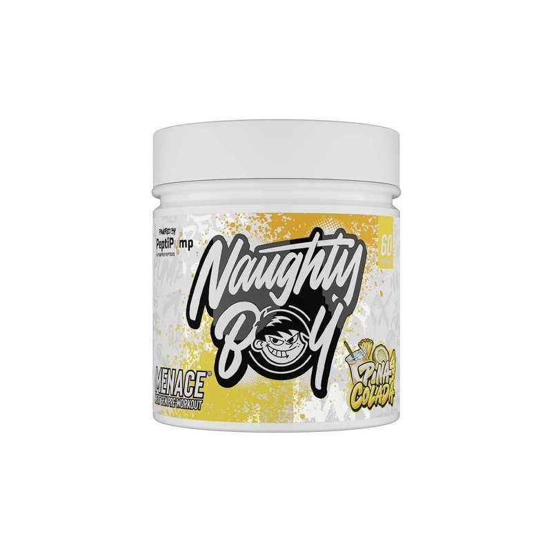 Naughty Boy Menace V2 – modernus pre-workout (prieštreniruotinis) papildas su 200 mg kofeino porcijoje, sukurtas didesnei energijai, „pump“ efektui ir fokusui treniruotėse. Sudėtyje – L-citrulino malatas, beta-alaninas, L-tirozinas, taurinas, taip pat pažangūs komponentai: CDP cholinas + uridinas proto–raumenų ryšiui, PeptiPump bioaktyvūs lęšių peptidai ir piperinas (MAX Catalyst) geresniam įsisavinimui. Puikus pasirinkimas intensyvioms jėgos ar ištvermės treniruotėms.