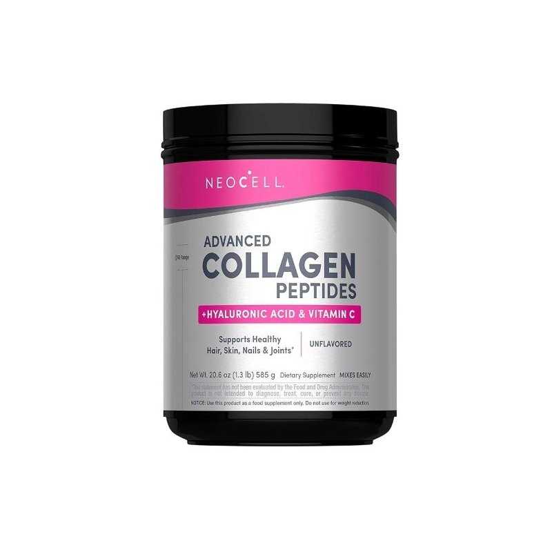 Kolagenas sudaro apie 70 % jūsų odos. Senstant organizme mažėja kolageno atsargos. NeoCell Advanced Collagen Peptides specialiai suformuluotas su hialurono rūgštimi ir vitamino C, kad skatintų organizmo kolageno gamybą ir palaikytų jūsų spindinčią grožį.