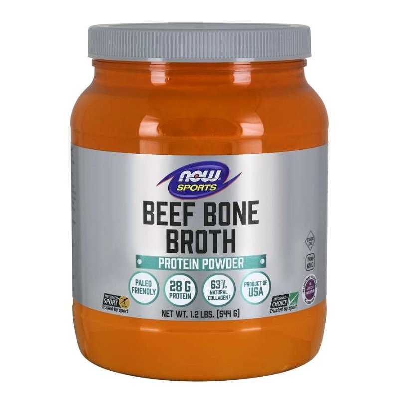 Now Foods prekės ženklo maisto papildas The Bone Broth miltelių pavidalu yra aukščiausios kokybės jautienos kaulų ekstraktas, kuriame vienoje porcijoje yra didelis baltymų kiekis. Jautienos kaulai yra įprastas maisto produktas daugelyje kultūrų ir turi natūralių baltymų, amino rūgščių, kolageno ir kitų medžiagų. Šis baltymų produktas pagamintas be dirbtinių ingredientų ir neturi daugelio dažnų alergenų, todėl yra tobulas baltymų šaltinis daugeliui žmonių. NOW Beef Bones Powder galima maišyti su vandeniu – tai skanus ir patogus būdas suteikti organizmui reikiamą baltymų kiekį.