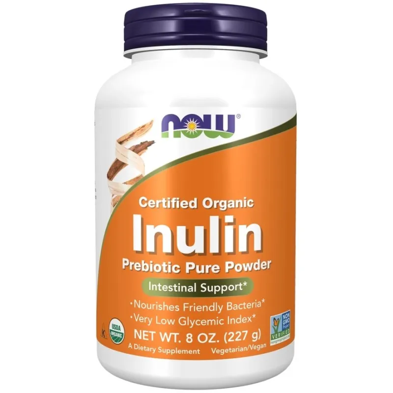 Inulinas, fruktooligosacharidas (FOS), yra tirpus prebiotinis pluoštas, atsparus virškinimui ir praktiškai nenutrūkstamas pasiekia storąją žarną. Žarnyno probiotinės bakterijos suvirškina inuliną ir, savo ruožtu, gamina trumpų grandinių riebalų rūgštis, kurios maitina storosios žarnos epitelio ląsteles. Taigi inulinas padeda palaikyti žarnyno sveikatą ir funkciją. Inulinas turi malonų skonį, suteikiantį švelnų saldumą maistui ir gėrimams, tačiau jo glikemijos indeksas yra labai žemas ir neturi neigiamos įtakos kraujo gliukozės lygiui.