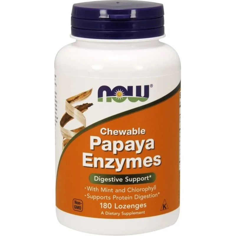 Virškinimo fermentai yra būtini organizmo gebėjimui pasisavinti ir visiškai panaudoti maistą. Organizmo gebėjimas gaminti fermentus mažėja su amžiumi, todėl virškinimo efektyvumas mažėja. NOW papajų fermentų pastilės turi gaivų skonį ir palaiko virškinimą vartojant po valgio. Mūsų pastilės gaminamos iš visos, nesubyriusios, purškiamu būdu džiovintos papajos miltelių, kiekvienoje pastilėje yra 40 mg papajos. Papildomai įtraukti proteazė, lipazė ir celiulazė, kad būtų užtikrinta pilna fermentų veikla. Ši tabletė taip pat naudinga kaip mėtų burnos gaiviklis.
