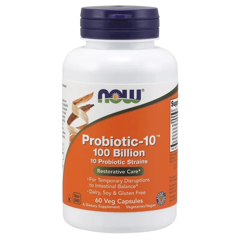 NOW Probiotic-10 siūlo subalansuotą gyvų mikroorganizmų spektrą, susidedantį iš rūgščią atlaikančių probiotinių bakterijų štamų, kurie natūraliai kolonizuoja žmogaus žarnyno traktą. Probiotinės bakterijos yra būtinos sveikam virškinimui, padeda išlaikyti žarnyno gleivinės vientisumą, palaiko tinkamą žarnyno judrumą ir dalyvauja detoksikacijos procese. Probiotic-10 naudoja bakterijų štamus, kurie buvo klinikiniais tyrimais patvirtinti dėl jų pagalbos palaikant sveiką imuninės sistemos funkciją.
