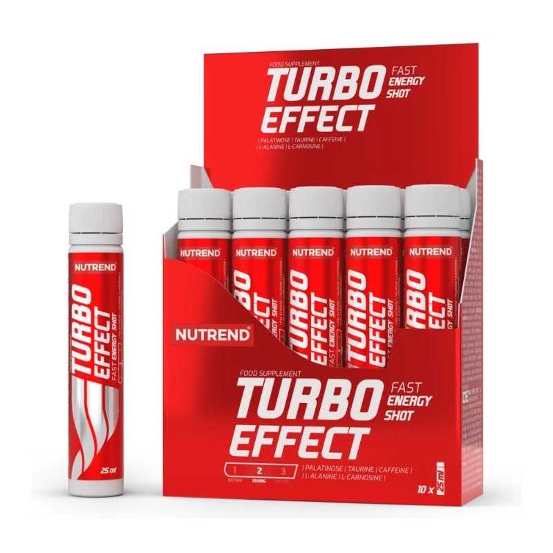Naujas TURBO EFFECT SHOT siūlo greitą energiją koncentruotoje mažoje skysčio dozėje. Šis papildas idealus energijai atstatyti kritiniais didelio pulsacijos dažnio momentais, kai žmogaus organizmas negali vartoti kieto maisto.