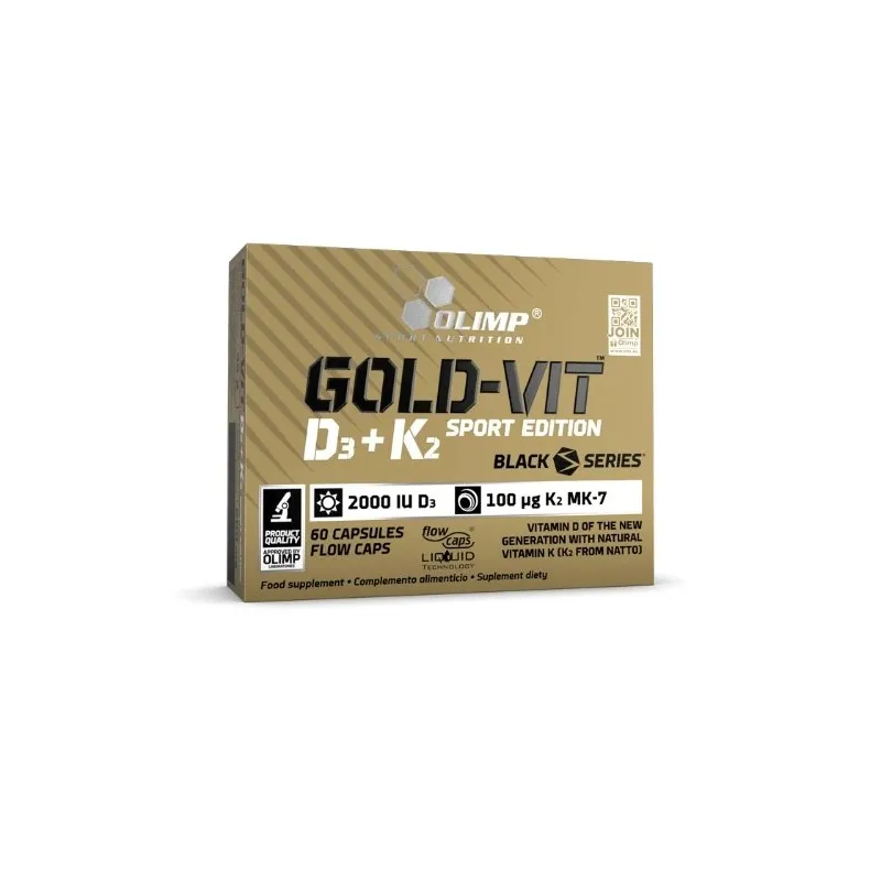 Maisto papildas Gold Vit D3 + K2 SPORT EDITION - sukurtas fiziškai aktyviems žmonėms, kuriems dėl intensyvaus gyvenimo būdo reikalingas pastiprinimas. Šis aukštos kokybės vitaminų preparatas, dėl novatoriškos gamybos technologijos ir pakartotinai išbandytų medžiagų, suteikia energijos ir padeda geriau jaustis. Vitaminų D3 ir K2 derinys tiksliai parinktose dozėse sustiprina kaulus. Vitaminas D3 papildomai sustiprina imuninę sistemą ir raumenis. Paprasta naudoti.