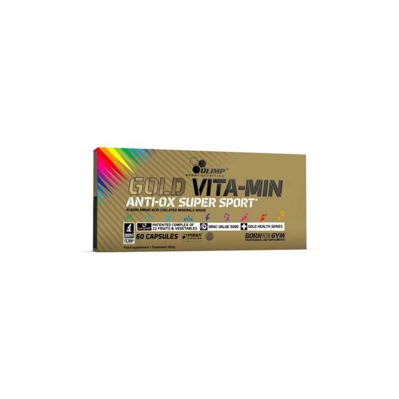 GOLD VITA-MIN ANTI-OX super sport® 2 komponentų maisto papildas kapsulėse, turintis vitaminų ir mineralinių komponentų, praturtintas didžiulėmis dozėmis antioksidantų. OXXYNEA® - patentuotas mišinys, susidedantis iš 22 daržovių ir vaisių ekstraktų, atrinktų siekiant gauti didžiausią antioksidantų kiekį. Tinka fiziškai aktyviems žmonėms!