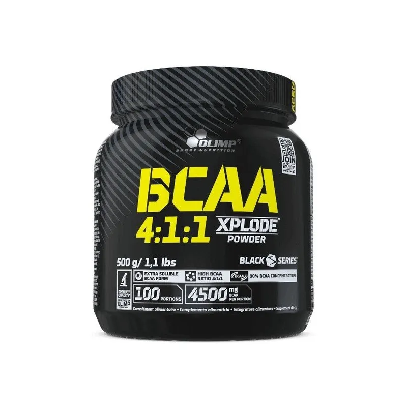 BCAA Xplode milteliai 4:1:1 Maisto papildas. Šakotosios grandinės aminorūgščių kompleksas kapsulėse. Šakotosios grandinės aminorūgščių BCAA (L-leucino, L-valino ir L-izoleucino) sudėtis proporcijoje 4:1:1. Produktas skirtas suaugusiems papildyti savo mitybą aminorūgštimis (L-leucinu, L-valinu, L-izoleucinu).