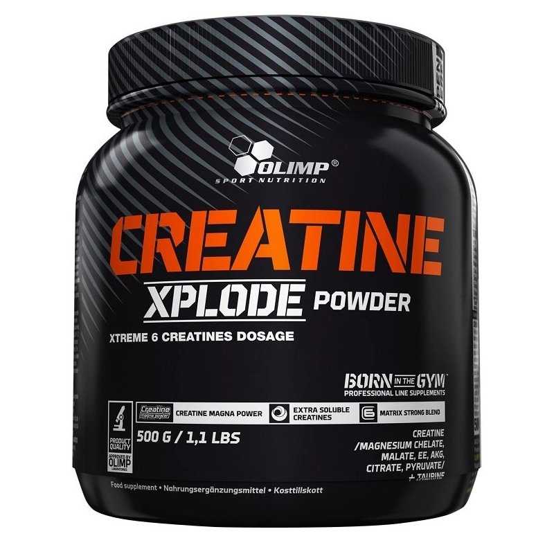 Puiki pažangiausių kreatino formų kombinacija, pasižyminti didžiausia anaboline veikla ir energijos pokyčių modeliu. Creatine Xplode sugeba viename unikaliame produkte sujungti net 6 populiariausias ir efektyviausias kreatino formas, šiuo metu naudojamas pažangiuose sportininkų papilduose. Šio ypatingo produkto ingredientai yra tinkamai subalansuoti, kad laisvųjų kreatino molekulių išsiskyrimas būtų pats didžiausias iš karto po Creatine Xplode suvartojimo, greitai tenkinant poreikį šiai medžiagai didžiausios katabolizmo apkrovos metu – po pabudimo ir iškart po treniruotės. Šio produkto kreatino formos apima malatą, etilo esterį, alfa-ketoglutaratą, piruvatą, citratą ir tikrą perlelę – puikų magnio kreatino kelatą (Creatine Magna Power). Šių našių kreatino formų naudojimas garantuoja ne tik pačių įvairiausių laisvųjų kreatino molekulių išsiskyrimo kinetikų pasiekimą, bet ir minimalų medžiagos praradimą (į neaktyvų kreatiną) nepalankiomis virškinimo trakto sąlygomis. Taip pat svarbu, kad po laisvo molekulės išsiskyrimo, energetiniai kreatino metabolitai (piruvatas, malatas ar alfa-ketoglutaratas) tampa junginių, dalyvaujančių energijos pokyčiuose (įskaitant Krebso ciklą), dalimi, tiesiogiai prisidedant prie subjektyvaus nuovargio sumažėjimo, kurį dažnai patiria sportininkai. Creatine Xplode praturtinimas taurinui, kuris gali labai efektyviai sinergiškai didinti treniruočių apimtis bei skatinti regeneracijos procesą, ženkliai prisideda prie sportinio pajėgumo gerinimo ir trumpina po treniruotės reikalingą atsistatymo laiką. Visi šie faktai neabejotinai iškelia naujausią OLIMP produktą į pirmaujančią poziciją, palyginti su tradiciniais vieno ingrediente kreatino papildais.