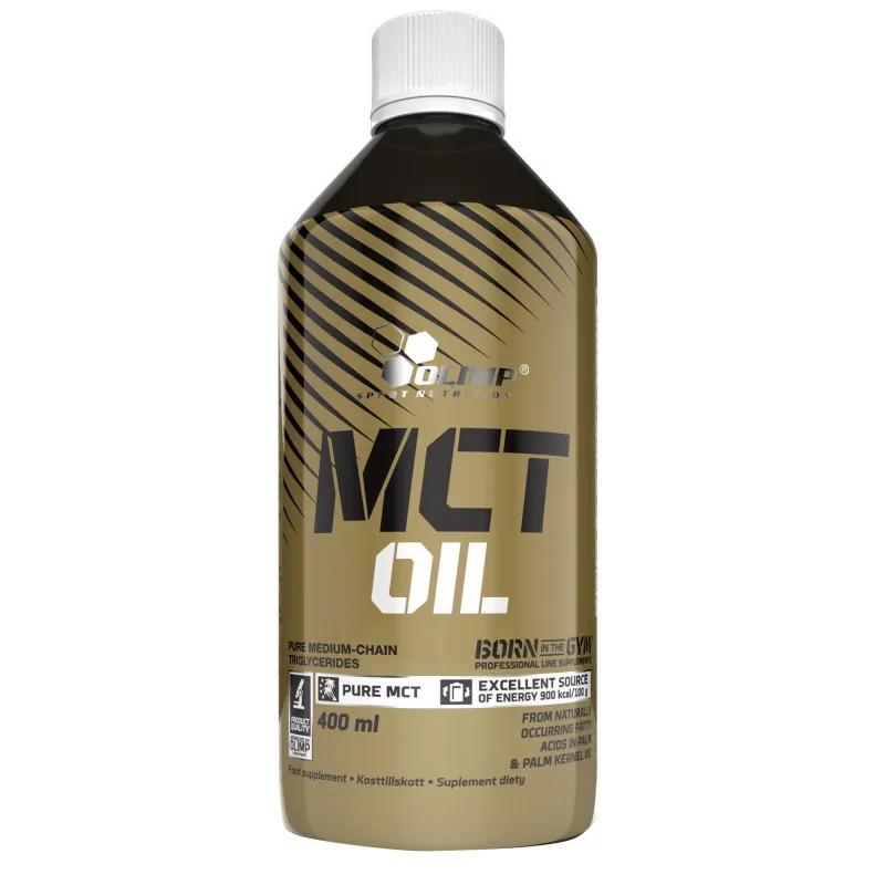 OLIMP MCT yra augalinės kilmės vidutinės grandinės trigliceridų kompleksas. Jie natūraliai randami labai ribotais kiekiais, o pagrindinis jų šaltinis maiste yra kakavos aliejus. MCT riebalai visiškai metabolizuojami kepenyse su energijos atpalaidavimu, nesikaupiant organizme kaip riebalinis audinys. MCT riebalų rūgščių dietinės savybės kyla iš to, kad jos absorbuojamos iš virškinamojo trakto tiesiai į portalinę veną, ir skirtingai nei kitos riebalų rūgštys jų virškinimui nereikalingas lipazės ar tulžies poveikis. Todėl MCT aliejus dažnai naudojamas ligoms, susijusioms su riebalų įsisavinimo sutrikimu. MCT riebalų rūgštys labai greitai patenka į bendrą kraujo apytaką (panašiai kaip gliukozė), o jų deginimui reikia dvigubai mažiau deguonies nei likusių riebalų rūgščių atveju. Joms būdingas dvigubai didesnis deginimo energijos kiekis (8,3 kcal/g) nei angliavandeniams ar baltymams (4 kcal/g), dėl ko padidėja termogenezė (kūno temperatūros padidėjimas). Labai greita MCT aliejaus absorbcija ir transformacija leidžia taupyti raumenų glikogeno atsargas sporto treniruočių metu. Be to, MCT rūgštys sulėtina kūno migracinį motorinį kompleksą, kuris pailgina maisto gleivinės kontaktavimo laiką, todėl pagerina maistinių medžiagų įsisavinimą. Taip pat nustatytas teigiamas MCT aliejaus poveikis vitamino E, kalcio ir magnio įsisavinimui. MCT aliejus nekėlė bendro cholesterolio lygio kraujyje, bet reguliuoja cholesterolio frakcijų kiekybinius santykius, didindamas HDL-cholesterolio (naudingos) kiekį, mažindamas „blogųjų“ frakcijų (LDL-cholesterolio) dalį. OLIMP MCT rekomenduojamas kaip: - greitos energijos šaltinis, būtinas treniruočių metu ir fiziškai aktyviems žmonėms, - veiksnys, palaikantis anabolinius procesus ir ribojantis raumenų masės katabolinius procesus, - veiksnys, skatinantis riebalinio audinio mažėjimą, - veiksnys, reguliuojantis cholesterolio frakcijų santykį kraujyje (HDL, LDL).