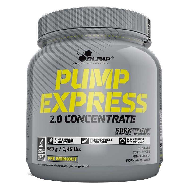 PUMP EXPRESS 2.0 KONCENTRATAS Maisto papildas miltelių pavidalu. Sudėtyje yra cukrų ir saldiklių. Jūs ypatingai greitai įveiksite pačius reikalaujančius treniruotes, dėka unikalios trijų tobulų formulių kompozicijos: PUMP EXPRESS NITRO CARB – pagrindinių pastangoms grynų amino rūgščių ir angliavandenių derinys su skirtingu gliukozės kiekiu kraujyje, PUMP EXPRESS SHOCK System – reikšmingas kiekių mikrogrūdinės kreatino ir farmacinio kofeino kiekis bei Vita-MIN STACK – efektyviam darbui būtinas vitaminų ir mineralų kompleksas. Pajuskite, kaip valdote didžiausią krūvį. Kreatino vartojimas didina fizinį pajėgumą trumpalaikių, aukšto intensyvumo kartotinių treniruočių metu (rekomenduojama 3 g kreatino dienos dozė).