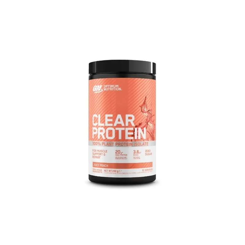 Optimum Nutrition Clear augalinių baltymų izoliato porcijoje yra 20 g aukštos kokybės baltymų, kurie palaiko raumenų augimą ir atsistatymą.