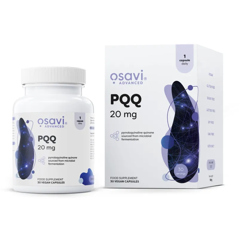PQQ 20 mg sudėtyje yra pirolokinolino chinonas, pagamintas mikrobų fermentacijos būdu, naudojant ne modifikuotą genetiniu požiūriu bakterijos Hyphomicrobium denitrificans štamą CK-275. Maisto papildas PQQ iš Osavi turi net 20 mg PQQ vienoje kapsulėje. Jame nėra nereikalingų priedų ir jis tinkamas tiek vegetarams, tiek veganams. Be to, produktas neturi cukraus, glitimo, laktozės, sojos ir genetiškai modifikuotų organizmų (GMO).