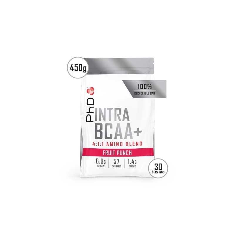 PhD Intra BCAA+ Arbūzas – aukščiausios kokybės BCAA ir elektrolitų formulė, skirta raumenų apsaugai treniruotės metu. Tinka vegetarams, tik 59 kalorijos porcijoje.