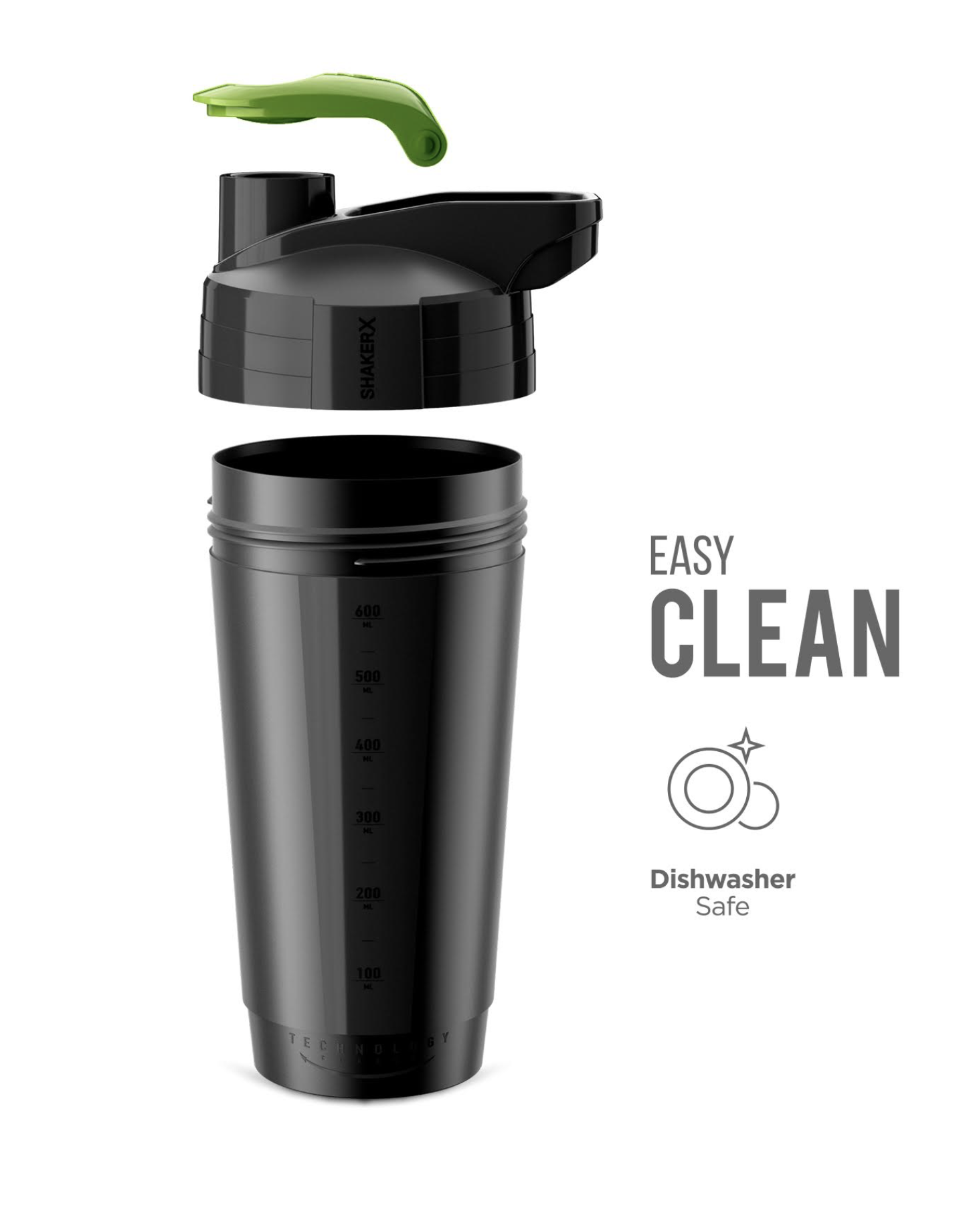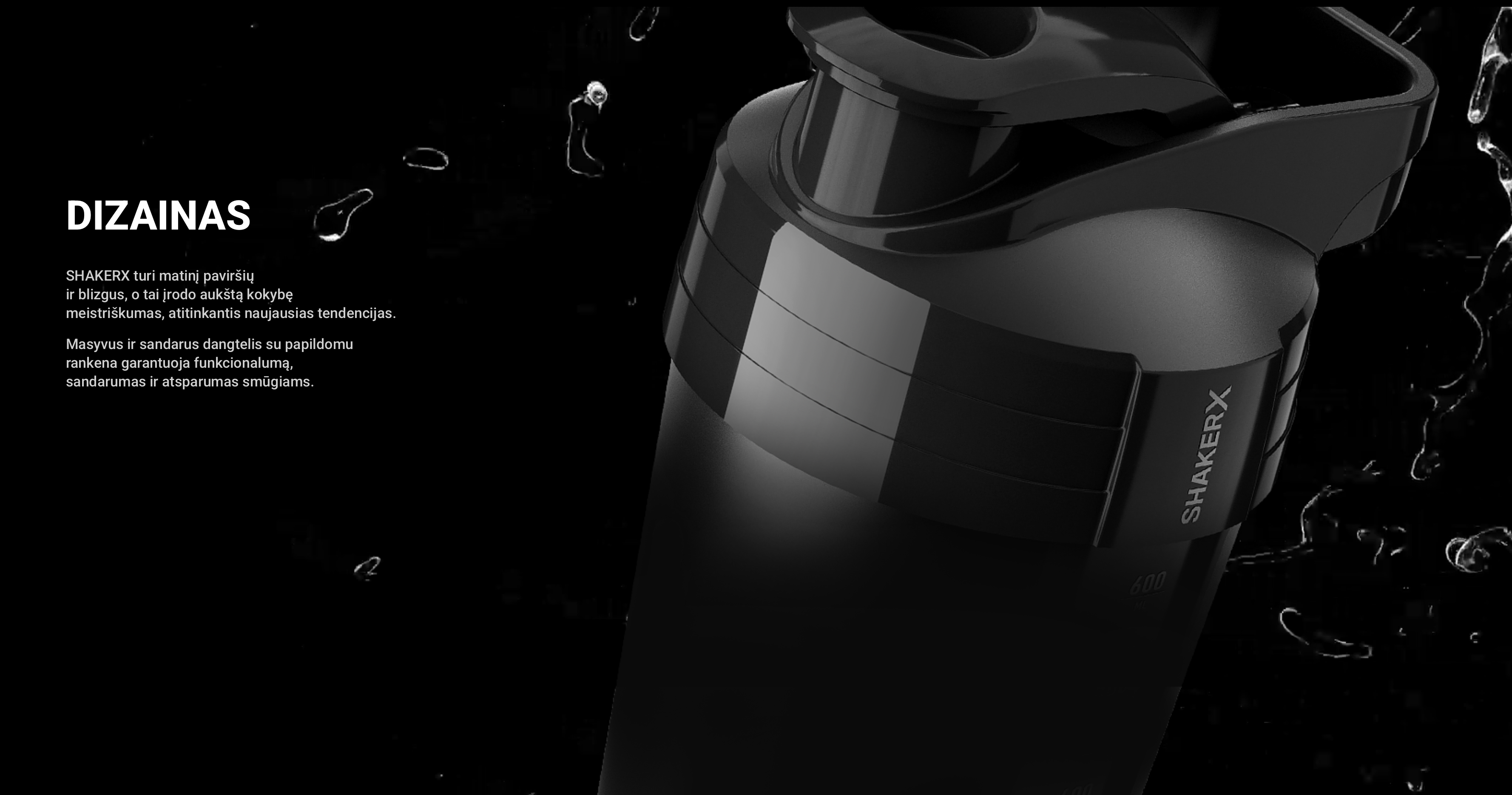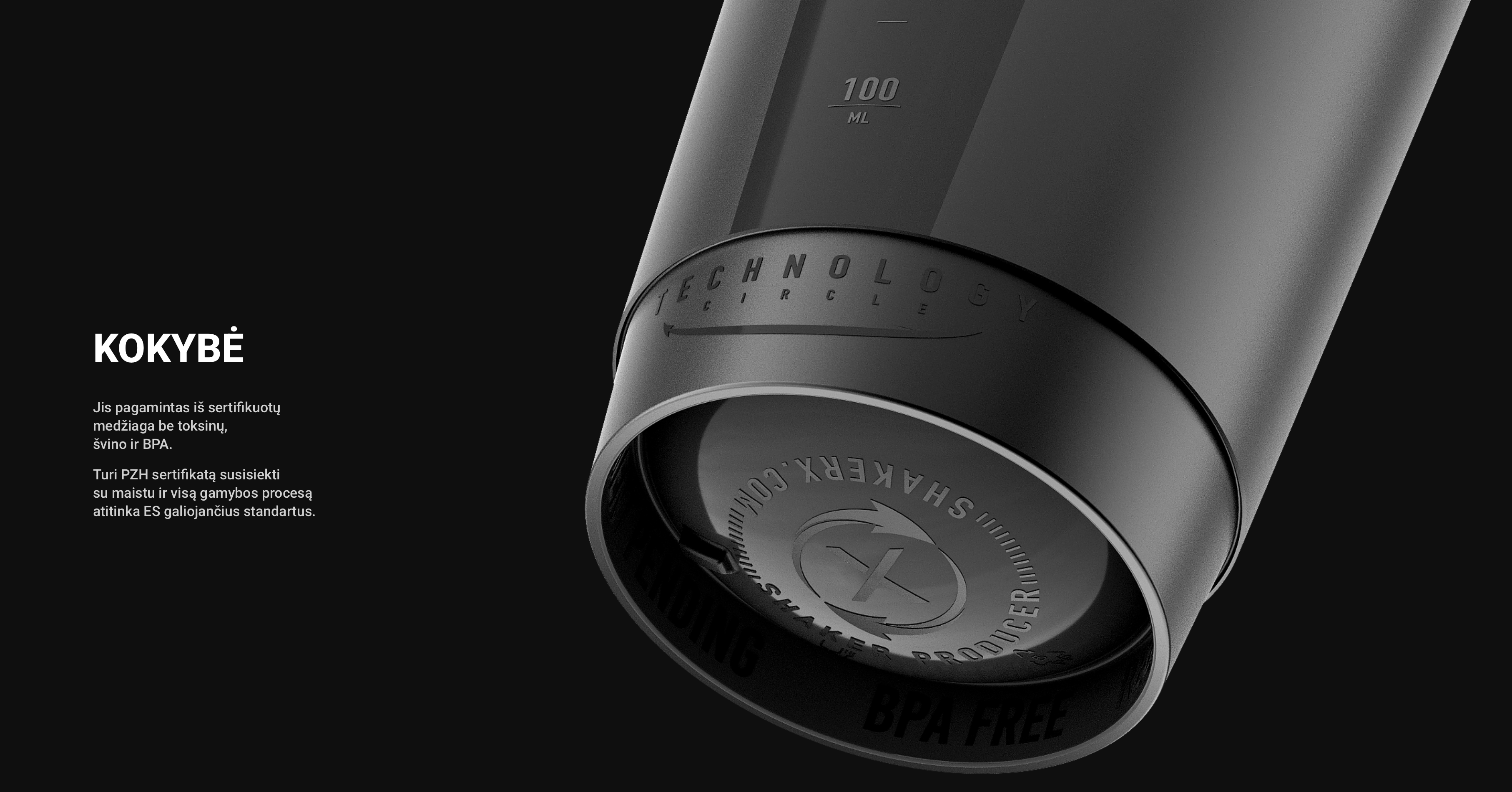 Dizainas derina matinį paviršių ir blizgius akcentus – atrodo moderniai ir „premium“. Masyvus, sandarus dangtelis su papildoma rankena pagerina funkcionalumą, o konstrukcija sukurta taip, kad shakerį būtų patogu laikyti ir naudoti kasdien.