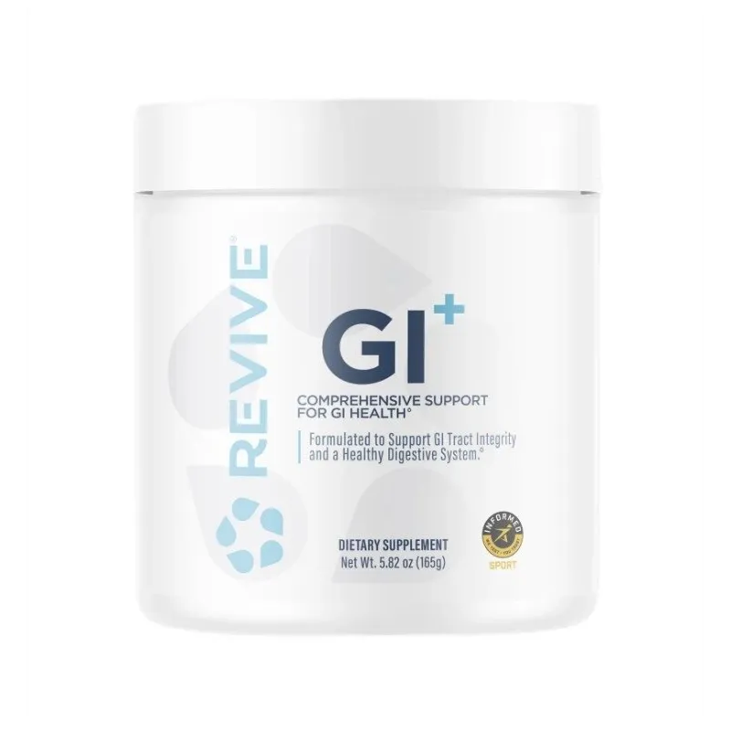 Virškinimo (V) traktas yra viena didžiausių kliūčių tarp šeimininko ir įvairių aplinkos veiksnių. Per gyvenimą per žarnyną praeina iki 60 tonų maisto. Taip pat pro žarnyną praeina daugybė mikroorganizmų iš aplinkos – kai kurie iš jų gali kelti grėsmę arba pažeisti V trakto vientisumą.1 Dėl šios priežasties sukūrėme GI+. Revive GI+ buvo sukurtas, siekiant skatinti ir apsaugoti optimalų V sveikatą derinant unikalius maistinius ingredientus miltelių pavidalu.