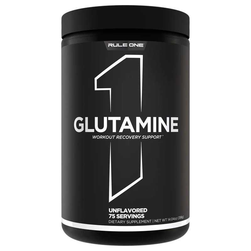 RULE ONE GLUTAMINE (be skonio) – tai grynas L-glutamino miltelinis papildas, skirtas sportuojantiems, kurie nori patogiai papildyti savo racioną aminorūgštimi, dažnai naudojama atsistatymo laikotarpiu. Glutaminas yra baltymų „statybinė medžiaga“ (aminorūgštis), o intensyvus ir ilgas fizinis krūvis gali didinti organizmo poreikį įvairioms maistinėms medžiagoms.