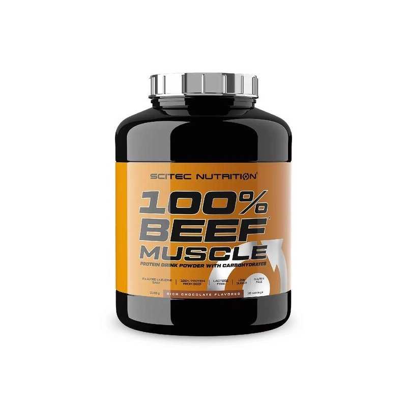 SCITEC 100% Beef Muscle, Rich Chocolate (3180 g) – „mass gainer“ tipo papildas, kuriame 100% baltymų – iš jautienos (hidrolizuotas galvijų baltymas) ir daug angliavandenių raumenų masės auginimui. 1 porcija (106 g) suteikia 30 g jautienos baltymų, 64 g angliavandenių (daugiausia maltodekstrinas ir waxy corn starch), 2 g L-leucino, tik 1,6 g riebalų ir 387 kcal. Be laktozės ir be glitimo, mažai cukrų. Pakuotėje – 30 porcijų (vieno mėnesio kursas).