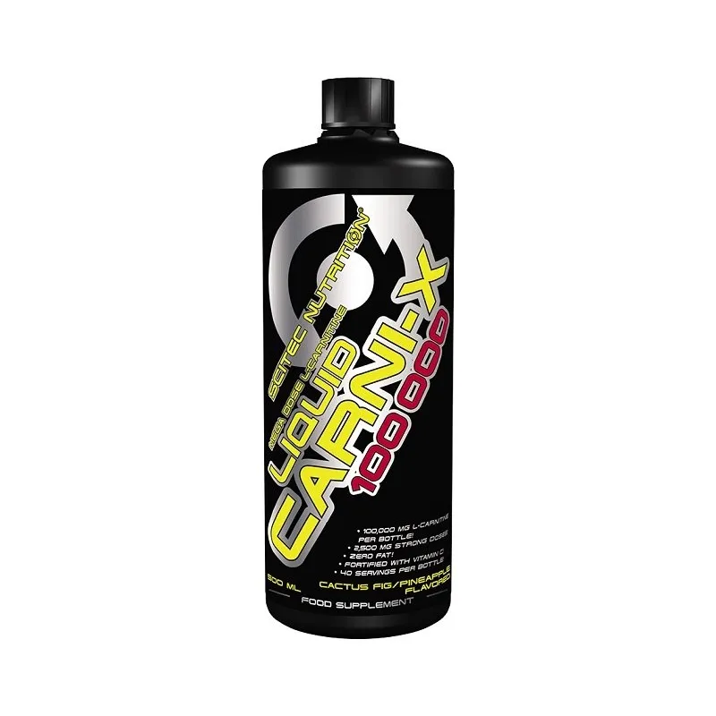 LIQUID CARNI-X 100 000 tiekia 2500 mg L-karnitino vienoje porcijoje populiaria skysta forma. Būdamas vitamino C šaltinis, jis suteikia 75 % oficialiai rekomenduojamos paros normos. Vitaminas C prisideda prie normalios energiją teikiančios apykaitos.