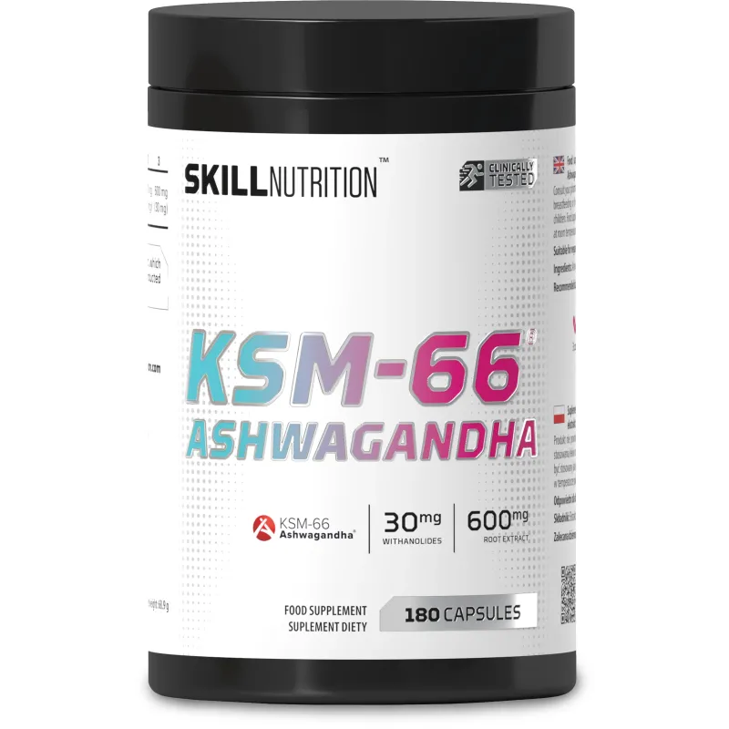Ashwagandha yra vienas iš geriausiai ištirtų adaptogenų, tradiciškai naudojamas padėti organizmui valdyti stresą ir nuovargį. Mūsų papildas yra pagamintas iš KSM-66® – aukščiausios kokybės ashwagandha šaknies ekstrakto, standartizuoto iki 5 % withanolidų. Naudojant unikalų vandeniu pagrįstą ekstrakcijos metodą, jis visiškai neturi alkoholio ir cheminių tirpiklių. Šis aukštos kokybės ekstraktas plačiai tirti klinikiniuose tyrimuose, įskaitant ir atletams skirtus.