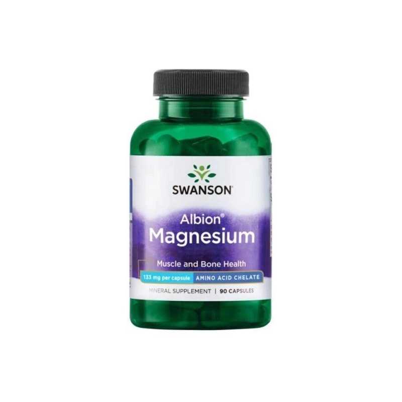 Swanson Albion kelatuotas magnis suteikia mineralinę paramą, kuria galite pasikliauti siekiant sveikų raumenų, nervų, kaulų ir kitų funkcijų. Kapsulėje yra 133 mg Albion amino rūgštimi kelatuoto magnio.