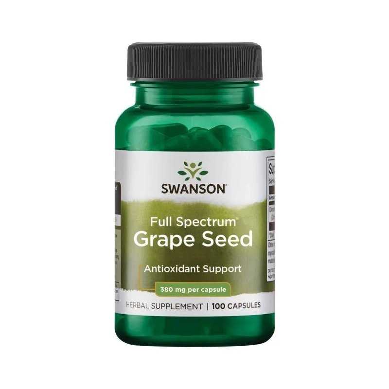 Swanson Premium Brand Vynuogių sėklų ekstraktas suteikia stiprią pagalbą viso kūno laisvųjų radikalų apsaugai. Aktyvūs polifenoliai vynuogių sėklose daro jį vienu iš galingiausių prieinamų antioksidantų. Kiekvienoje vieno kapsulės dozėje yra 380 mg vynuogių sėklų miltelių.