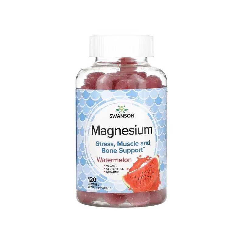 SWANSON Magnesium Gummies, Watermelon (120 guminukų) – skanūs, lengvai vartojami magnio citrato guminukai, skirti kasdieniam palaikymui, kai norisi paprastos rutinos be kapsulių. 1 guminukas suteikia 84 mg magnio (iš magnio citrato) – 22% RMV. Vegan, be glitimo, Non-GMO, sultingo arbūzų skonio. Magnis prisideda prie normalios nervų sistemos ir raumenų funkcijos, energijos apykaitos ir padeda mažinti nuovargį.