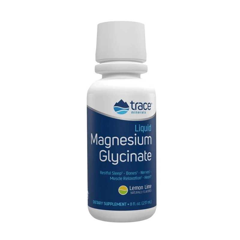 TRACE MINERALS LIQUID MAGNESIUM GLYCINATE (skonis Lemon Lime) – tai lengvai vartojamas skystos formos magnio glicinatas, papildytas ConcenTrace Trace Mineral Complex – koncentruotu joninių mikroelementų kompleksu. Magnio glicinatas vertinamas dėl gero įsisavinimo ir švelnumo skrandžiui, todėl šis produktas puikiai tinka kasdienei rutinai.