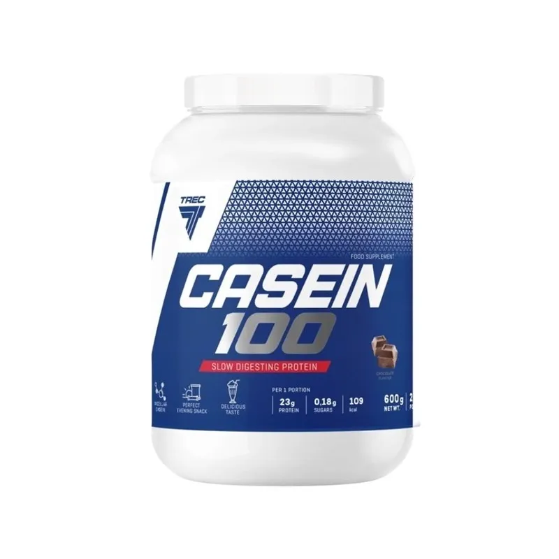 CASEIN 100 yra aukštos baltymų koncentracijos maisto papildas. Jis sudėtyje turi miceliarinio kazeino, kuris yra puikus baltymų šaltinis su naudingai pailgintu įsisavinimu. CASEIN 100 papildo mitybą baltymais, kurie prisideda prie raumenų masės augimo ir palaikymo.